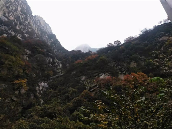 山路上,峻拔的山巖上爬滿(mǎn)了紅黃相間的樹(shù)木,云霧繚繞,一路上溪水潺潺,鳥(niǎo)鳴歡歌,石階古寺下,秋風(fēng)微涼,拋開(kāi)一切雜念,心中只有這北方的深秋下,這一條古老的華山路。