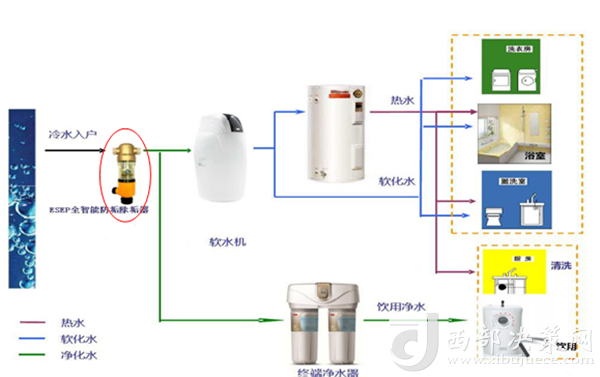 通常安裝在進(jìn)水管道水表后,是對全屋用水的第一道過濾、防垢設(shè)備??梢宰柚顾w中成垢離子的結(jié)合,并且過濾自來水中的泥沙、鐵銹、大顆粒物質(zhì)。