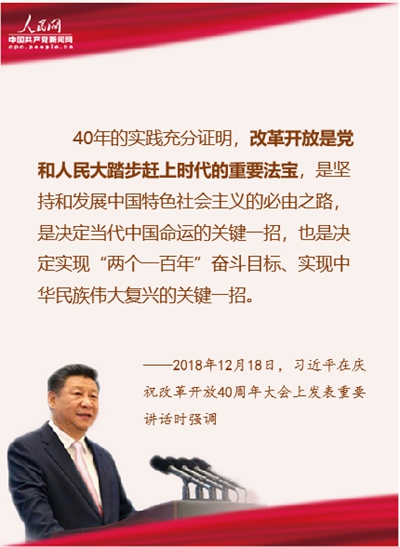 40年的實(shí)踐充分證明,改革開(kāi)放是黨和人民大踏步趕上時(shí)代的重要法寶,是堅(jiān)持和發(fā)展中國(guó)特色社會(huì)主義的必由之路,是決定當(dāng)代中國(guó)命運(yùn)的關(guān)鍵一招,也是決定實(shí)現(xiàn)“兩個(gè)一百年”奮斗目標(biāo)、實(shí)現(xiàn)中華民族偉大復(fù)興的關(guān)鍵一招。
