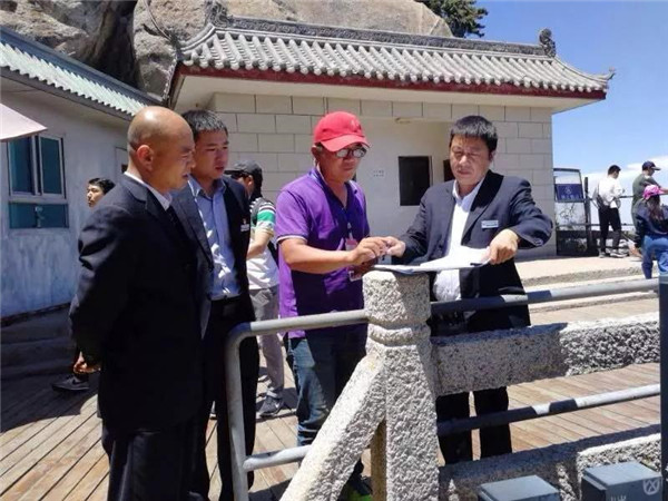 其實,雷科峰平時對大家要求挺嚴(yán)的,職工背后議論說雷科峰有一種軍人作風(fēng),凌厲、硬氣,大家跟上他干事活多還辛苦。印象最深的是那一次美化南天門“三間房一頁瓦”附近的臺地。坑洼不平的臺地上原來蒙著一堆土,晴天一層灰,雨天滿地泥,冬天雪泥一凍一消,平臺就成了沼澤,不說過來過去行走不便,看起來也讓人不舒服,游客常常一不小心就濺得滿身的泥水,很掃興,雷科峰下決心美化平臺。美化平臺所用的沙子、石子、水泥要到二三里路遠(yuǎn)的溝底去背。從山頂?shù)綔系?,一路上全是立坡陡崖,雷科峰領(lǐng)著十幾名職工利用六天的工余時間,硬是把近二十噸的沙石背了上來。背料過程中,有的職工肩膀磨破了,有的雙腿像篩糠一樣抖個不停,許多職工中途不敢蹴下來休息,怕一蹴下就再也站不起來了,歇息時把沙袋子擱在路邊的石坎上,人站著緩口氣……一個個汗流浹背,氣喘吁吁。