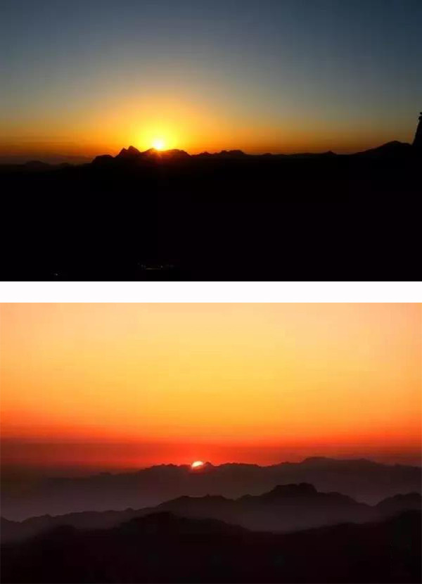 啊!青春的烈焰在升騰;新的生靈在震撼;歲月的車輪滾滾向前……該存在的難消失,該消失的存在難!天和地分了家,光明戰(zhàn)勝了黑暗。黑白交替,陰陽輪換!宇宙徹悟,氣象萬千。野草滾露,空氣新鮮;松濤簸香,山花爛漫;潮涌般的游客個個舒坦,猶如飽乳的嬰兒笑得甜甜。零晨三點(diǎn),漆黑一團(tuán)。熙熙攘攘的游客擁向山路彎彎,歡聲笑語、呼喚吶喊、手電筒的光柱密密麻麻。萬萬千千織成縷縷金練,宛如“金龍盤山”!朝陽峰上熱鬧非凡。不是拜佛求仙,卻耐心等待!企盼一個輝煌時刻,猶如新生命噴紅分娩。一飽華山日出的壯觀!