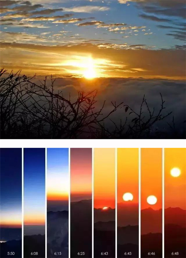 該存在的難消失,該消失的存在難!天和地分了家,光明戰(zhàn)勝了黑暗。黑白交替,陰陽輪換!宇宙徹悟,氣象萬千。野草滾露,空氣新鮮;松濤簸香,山花爛漫;潮涌般的游客個個舒坦,猶如飽乳的嬰兒笑得甜甜。(郭均和)