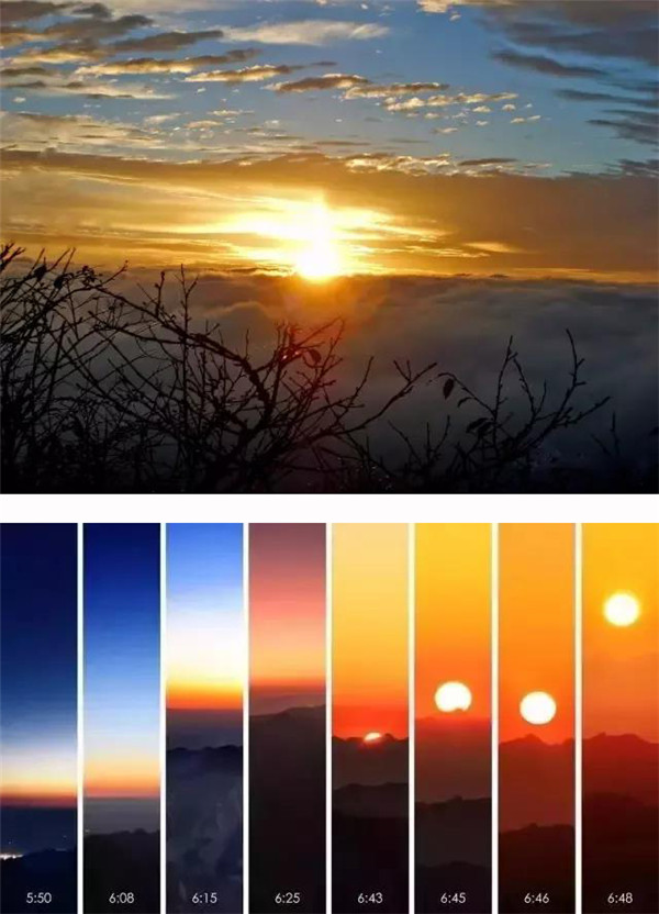 那管勞累氣喘;那管汗水蟄眼;那管步履艱難……疾步“金鎖關(guān)”,直上“三峰巔”!誰料黎明時分天氣變,風(fēng)吹烏云卷狂瀾!面對成功的一幕,緊捏一把汗。不看日出似乎寡淡。經(jīng)過激烈的廝殺,可喜的是天公降臨的“狂飆”啊,猶如英雄的東方赤子,敢向任何生命的敵人宣戰(zhàn)。
