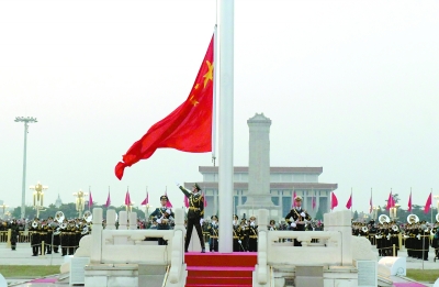 ▲1日早晨,北京天安門廣場舉行隆重的升國旗儀式。新華社發(fā)(唐召明攝)