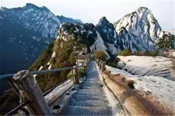 北峰,又名云臺峰,山勢孤聳,三面都是絕壁,只有一道山嶺通往南面山嶺,形勢一分險要。影片《智取華山》的故事,就發(fā)生在這里。從北峰繼續(xù)前進,就到了登華山的第四險關(guān)——擦耳崖,因路窄且依壁臨淵,游人無不貼壁擦耳而行。