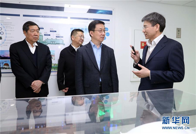 1月8日,中共中央政治局常委、國務院副總理韓正到國家能源局調研并主持召開座談會。這是韓正來到中國核電發(fā)展中心,了解核電發(fā)展現(xiàn)狀、自主創(chuàng)新和核心技術攻關、安全運行等情況。 新華社記者 劉衛(wèi)兵 攝