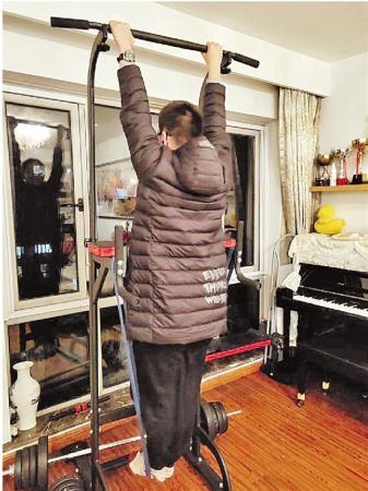 不少家長(zhǎng)買了體育器械讓孩子在家里開練。