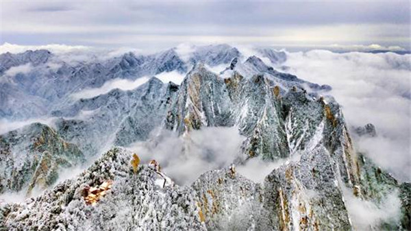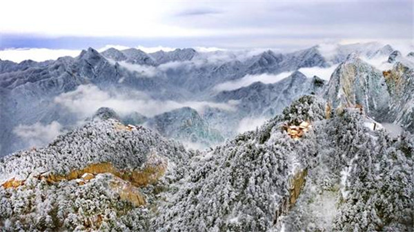 一場(chǎng)大雪將西岳華山變成白雪皚皚的世界,白雪與蒼翠的華山奇松、靈動(dòng)的云海交相輝映,如夢(mèng)如幻;滿(mǎn)山遍野玉樹(shù)瓊花,樹(shù)枝上通體的霧凇晶瑩剔透,繪就冬日畫(huà)境,美不勝收,游人如置身人間仙境。