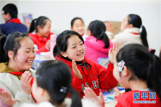 2月25日,在貴州省畢節(jié)市大方縣奢香古鎮(zhèn)恒大第十一小學(xué),孩子們?cè)陂_(kāi)學(xué)第一天的課間玩小游戲。 新華社發(fā)(羅大富 攝)