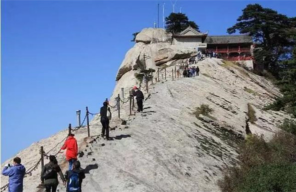而被大家熟悉的長(zhǎng)空棧道,則位于華山南峰東側(cè)山腰,是華山派第一代宗師元代高道賀志真為遠(yuǎn)離塵世靜修成仙,在萬(wàn)仞絕壁上鑲嵌石釘搭木椽而筑。去過(guò)華山的朋友,大部分肯定體驗(yàn)過(guò)華山長(zhǎng)空棧道,在千仞絕壁之上,左邊是大山,而右邊就是萬(wàn)丈深淵,想要通過(guò)僅僅是靠著腳下這一寬30多公分的棧道,周圍無(wú)任何欄桿,但令人興慶的是,在崖上還有釘?shù)睦喂痰蔫F索可以抓住,讓探險(xiǎn)者可以稍微放松一點(diǎn)心情。