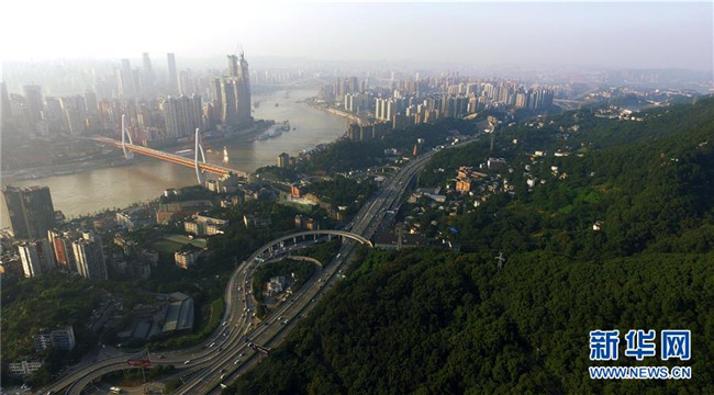 這是2018年10月10日無人機拍攝的重慶城市景象。新華社記者王全超攝