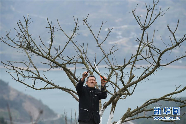 重慶市巫山縣曲尺鄉(xiāng)朝陽村村民在脆李種植地里對脆李樹進行管護(2019年2月16日攝)。新華社記者王全超攝