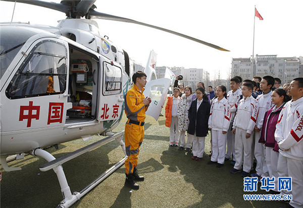 活動(dòng)現(xiàn)場(chǎng)還設(shè)置了應(yīng)急救援演練,活動(dòng)安排一架專業(yè)航空醫(yī)療救援直升飛機(jī)、兩輛救護(hù)車(chē)和一輛安全地震模擬車(chē)參與。