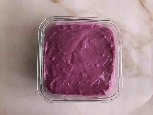 11.將做好的紫薯泥倒入碗中,抹平,入冰箱冷藏2小時(shí)