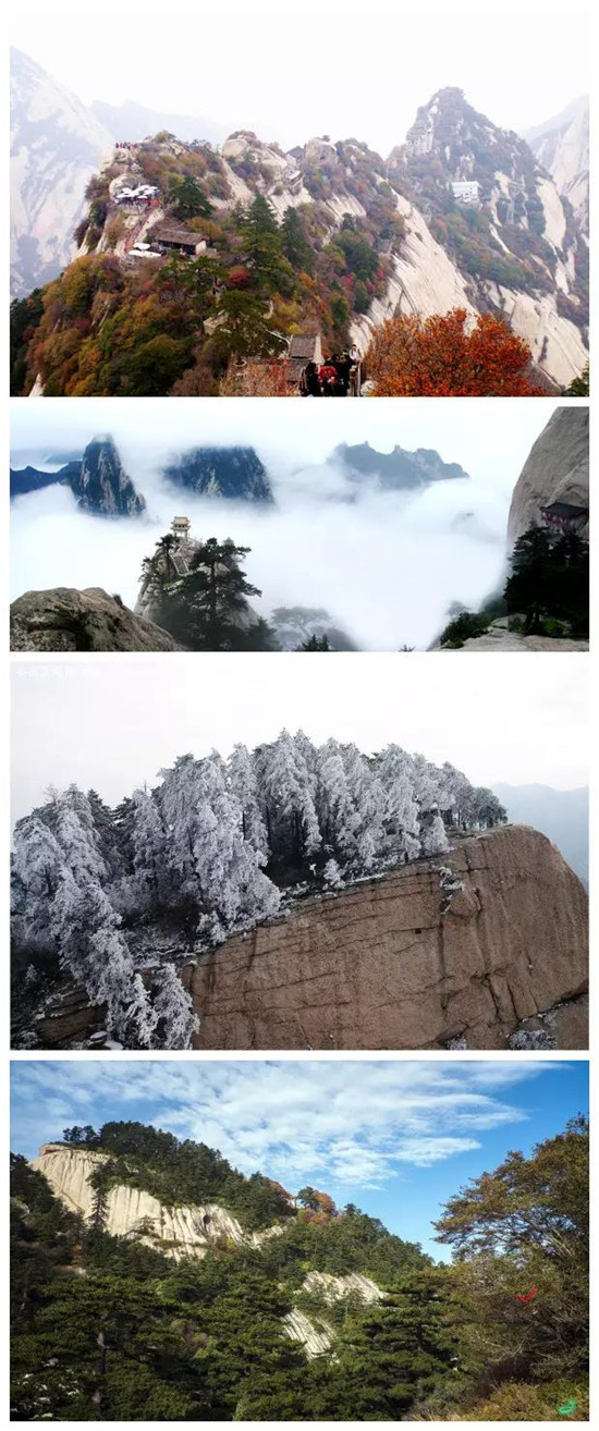 春之翠綠,勃勃生機(jī)。夏之云海,如夢(mèng)如幻。秋之絢爛,滿(mǎn)山紅葉。冬之潔白,銀裝素裹。 【四季華山】