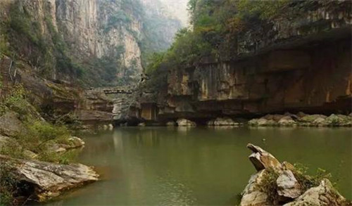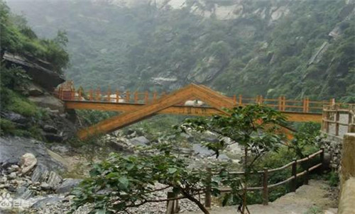 第二游:仙峪(仙峪,又名車箱谷,在華山峪西,與華山峪僅一嶺之隔,傳說古時黃初平、黃初起弟兄在此牧羊成仙,因而得名。仙峪深五十余里,峪道窄狹清幽,山路崎嶇蜿蜒,河流湍急,山石險峻,多處路段鑿崖,加棧凌空通過。進(jìn)峪五里處,有斜嶺橫阻,令人有谷盡路絕之感,然越嶺橫度,又平添柳暗花明的情趣)。