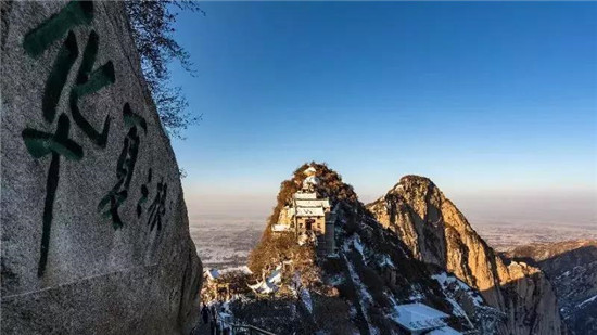 在華山北峰處,有一處巨大的摩崖石刻,上寫四個(gè)大字“華夏之根”。意思是華山是中華民族的發(fā)源地,是華夏民族的根系。
