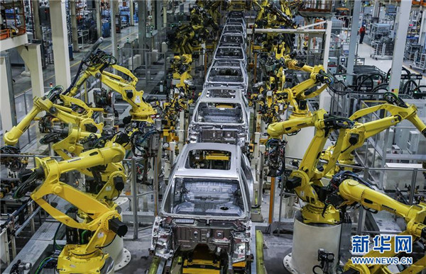 這是吉利汽車寶雞制造基地的車身總拼線(2016年10月26日攝)。 新華社發(fā)