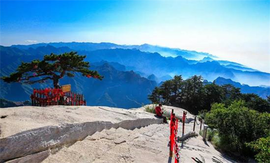 登臨青柯坪,還可眺望秦川,那種感覺就如從洞天俯視塵寰。四周峰巒環(huán)繞,林木蔥郁,山寺石洞,掩映其間,這里就是華山風水的結(jié)穴處。