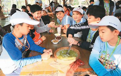 兩岸和平小天使在新竹北埔麥客田園體驗制作擂茶。