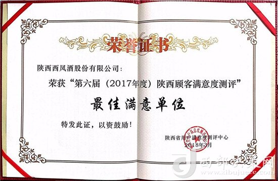西鳳股份公司獲得“第六屆陜西顧客滿意度測評” 最佳滿意單位光榮稱號