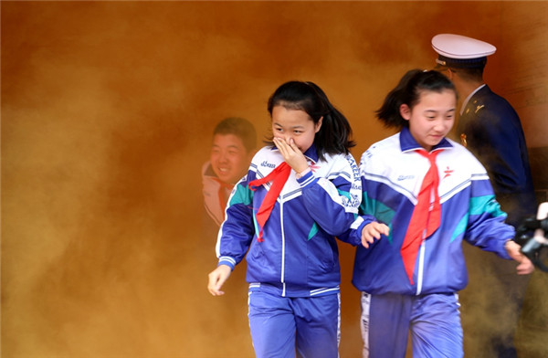 消防員組織師生開(kāi)展了火災(zāi)逃生體驗(yàn)。