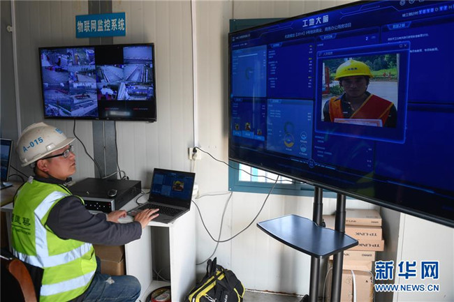 3月26日,工作人員在“浙江智慧之門”項(xiàng)目工地察看“工地大腦”的實(shí)時(shí)數(shù)據(jù)。據(jù)了解,“工地大腦”匯總了人員、設(shè)備、物料、進(jìn)度、環(huán)境等要素。新華社記者黃宗治攝