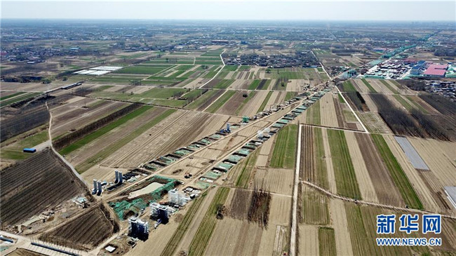 這是京雄城際鐵路施工現(xiàn)場(3月20日無人機拍攝)。新華社記者 楊世堯 攝