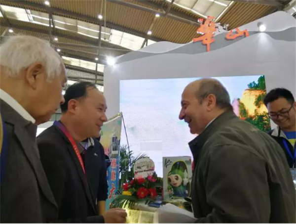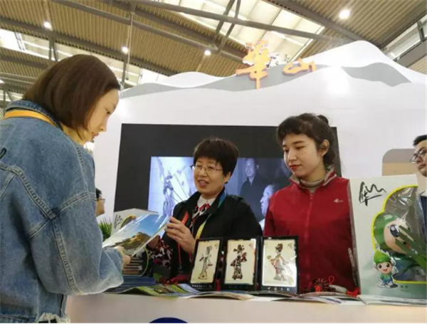 會上,華山管委會常務副主任郭文平、華山管委會黨工委委員張永江、華山管委會文物旅游處副處長王領娣一行來到展臺視察工作,并在現(xiàn)場與市民互動,郭文平主動當起了華山講解員,為前來咨詢的市民答疑解惑,宣傳華山,贈送禮物。