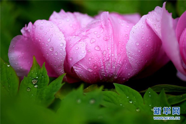 這是在石家莊市正定榮國(guó)府影視基地拍攝的牡丹花(4月13日攝)。時(shí)下,河北石家莊正定榮國(guó)府影視基地內(nèi)的牡丹花次第開(kāi)放,在春雨的滋潤(rùn)下顯得格外晶瑩剔透、美麗嬌艷。 新華社發(fā)(陳其保 攝)