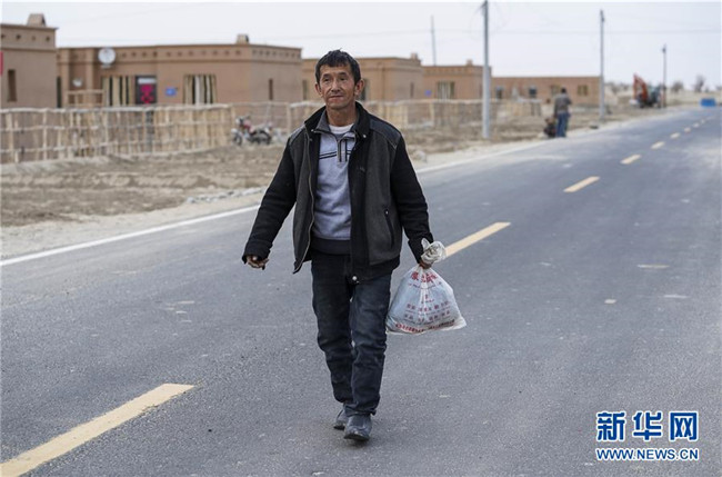 2016年,生態(tài)惡化與脫貧攻堅(jiān)的雙重考慮下,于田縣政府將達(dá)里雅布依搬遷提上了議程。2017年,政府投入資金修建了深入沙漠的90公里柏油路,并為貧困戶(hù)建設(shè)了安置房。