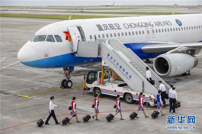 4月18日,重慶江北國際機(jī)場停機(jī)坪上,重慶航空公司的試飛機(jī)組成員在有序登機(jī)。當(dāng)日,隨著重慶航空一架客機(jī)安全平穩(wěn)降落在巫山機(jī)場,標(biāo)志著地處長江三峽核心區(qū)的巫山機(jī)場試飛工作圓滿成功。本次試飛對巫山機(jī)場陸空通信、導(dǎo)航設(shè)施、跑道道面、滑行路線、飛行區(qū)標(biāo)志標(biāo)識、機(jī)場凈空、飛行程序、機(jī)場運(yùn)行標(biāo)準(zhǔn)等進(jìn)行全面檢驗(yàn),各項(xiàng)參數(shù)和指標(biāo)正常,機(jī)場相關(guān)設(shè)施、設(shè)備均符合行業(yè)規(guī)范要求,飛行區(qū)已基本具備民航飛機(jī)通航條件,有望在今年6月正式通航。新華社記者 劉潺 攝