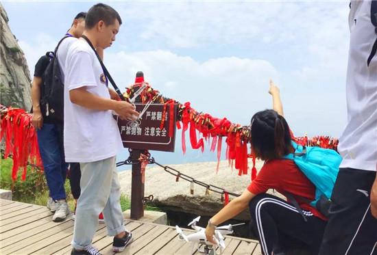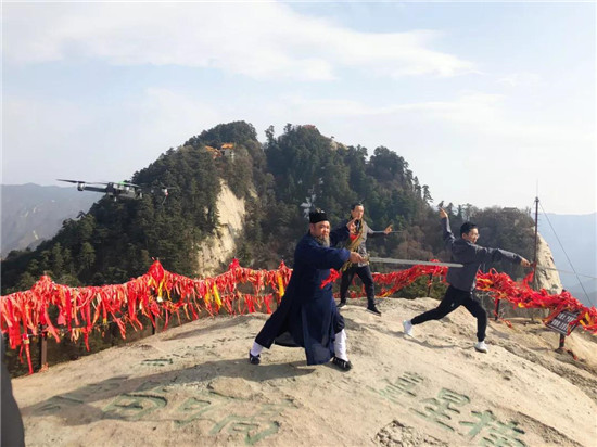 《百家講壇》魏新學(xué)者、《奇葩說第五季》清華名嘴楊奇函及中國道教協(xié)會車道長在西峰頂拍攝《華山論劍》文化旅游紀(jì)念片