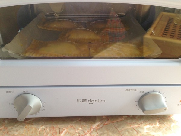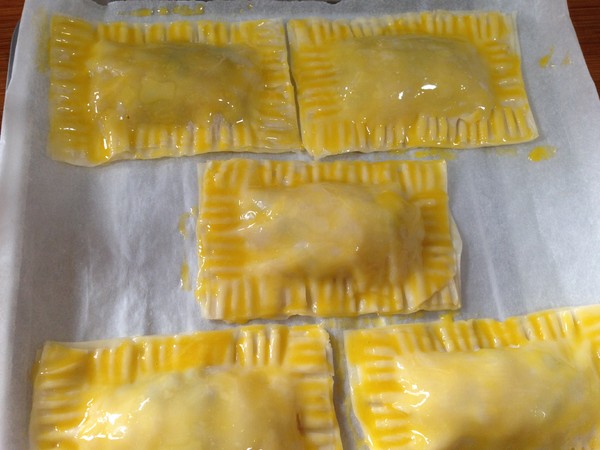 10.烤盤鋪油紙放入蘋(píng)果派,表面刷蛋黃液