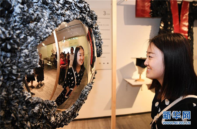 5月24日,觀眾在畢業(yè)生作品展上參觀綜合材料作品《浮光掠影》。