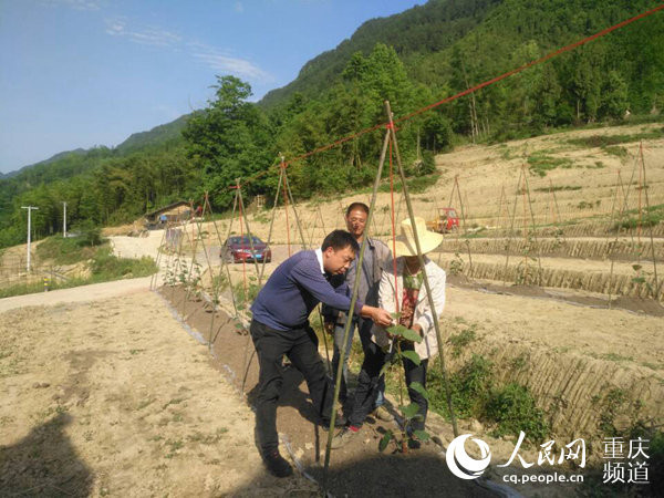 “不著急,肥料鋪均勻再下苗。”萬(wàn)州區(qū)果樹(shù)站副站長(zhǎng)周偉,正手把手教向紅兵栽種果樹(shù)。