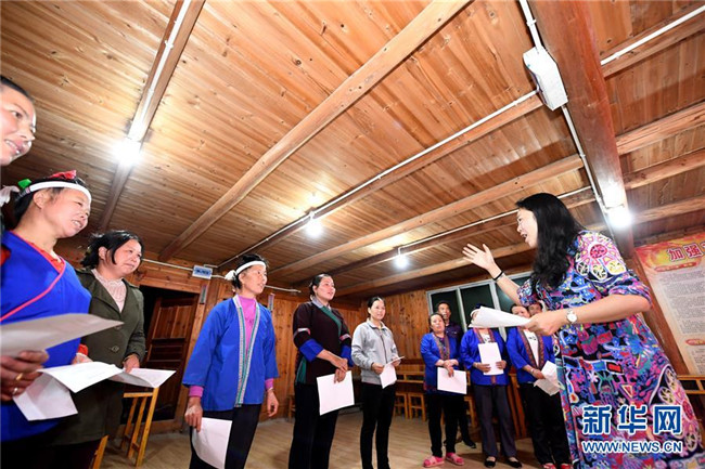 今年42歲的吳純娟是廣西柳州三江侗族自治縣文化館的一名文藝輔導(dǎo)員。她從小喜歡唱歌,工作后接觸并喜歡上侗族大歌,2005年起還為此專(zhuān)門(mén)拜師學(xué)藝。今年3月中旬,她來(lái)到三江縣良口鄉(xiāng)燕茶村,成為了一名駐村工作隊(duì)隊(duì)員,她說(shuō),侗族大歌是她工作的一件“法寶”。 燕茶村位于侗鄉(xiāng)大山深處的山腰上,熱愛(ài)歌舞是村民們的天性。鐘情于侗族大歌的吳純娟也將這項(xiàng)充滿(mǎn)魅力的原生態(tài)藝術(shù)帶進(jìn)了村。她在村里開(kāi)設(shè)了培訓(xùn)班,還專(zhuān)門(mén)成立了“侗族大歌文藝隊(duì)”,利用晚上及其他業(yè)余時(shí)間免費(fèi)教村民唱侗族大歌,村部會(huì)議室、村里的戲臺(tái)、還有山上的千畝茶園……幾乎燕茶村的每個(gè)角落都留下了他們的歌聲。吳純娟還將侗族大歌帶進(jìn)了課堂,引發(fā)了師生們學(xué)唱侗族大歌的熱情。 吳純娟說(shuō):“侗族大歌歌唱的都是自然、勞動(dòng)和愛(ài)情之美,我希望在傳承民族文化的同時(shí),也能更加激勵(lì)貧困山區(qū)的群眾鼓足干勁,朝著美好生活?yuàn)^進(jìn)!” 新華社發(fā)(黎寒池 攝)
