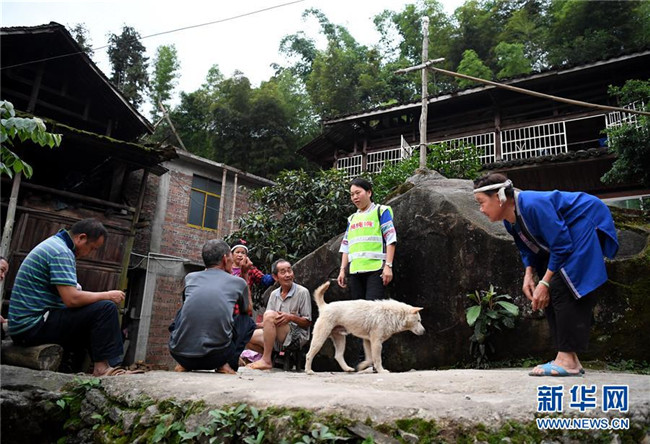 5月27日,在廣西柳州市三江侗族自治縣良口鄉(xiāng)燕茶村,吳純娟入戶(hù)了解村民家庭情況。