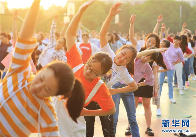 6月4日,在湖南省衡陽縣第一中學(xué),高三學(xué)生做早操。 新華社發(fā)(曹正平攝)