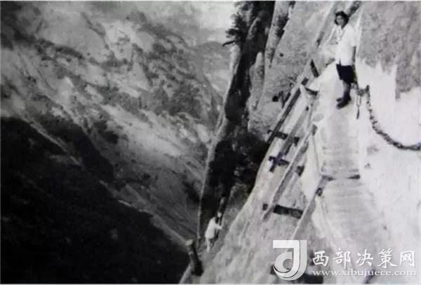 明代“后七子”之一的李攀龍《太華山記》記述:“出南天門向西就是棧道,棧雖有銅柱鐵索攔護,然闊不盈尺。行二十余丈方至盡頭。下折為井,高約三丈,旁出復(fù)為棧……”