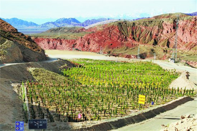 “那時(shí)沒(méi)有水、沒(méi)有土,到處都是山體的裸巖。”曹三星回憶,“首先要把山體的巖石開(kāi)鑿出來(lái),再?gòu)纳较掳押靡稽c(diǎn)的土壤運(yùn)到山上進(jìn)行換填。剛開(kāi)始種下的樹(shù)苗很難存活,次年還要進(jìn)行補(bǔ)種,后來(lái)在綠化帶下廣布中水管網(wǎng),采用滴灌、噴灌的節(jié)水模式,才保證了綠化效果,最終硬生生在荒山戈壁上種出了一片片綠色。”