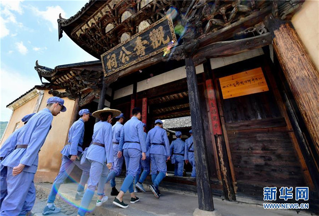 一隊(duì)身著紅軍軍裝參觀的隊(duì)伍,整齊劃一拾級(jí)而入公祠。時(shí)光仿佛回到1934年9月30日。