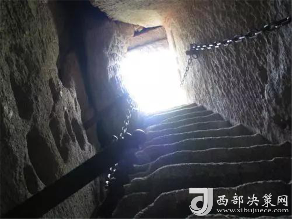 大上方——“上方”是道教術(shù)語(yǔ),意為“天界”,大上方是華山道士焦道廣隱居之處,其路好似掛在懸崖峭壁上,近看,只能靠攀藤附葛、足蹬石窩才能上去,所以意為這是只有能像神仙騰云駕霧才能走的地方!