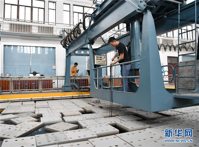 在西北工業(yè)大學航海學院消聲水池實驗室,學生在調試實驗儀器(6月17日攝)。