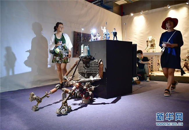 觀眾在參觀西安美術學院實驗藝術系學生展出的畢業(yè)設計作品(6月10日攝)。新華社記者邵瑞攝