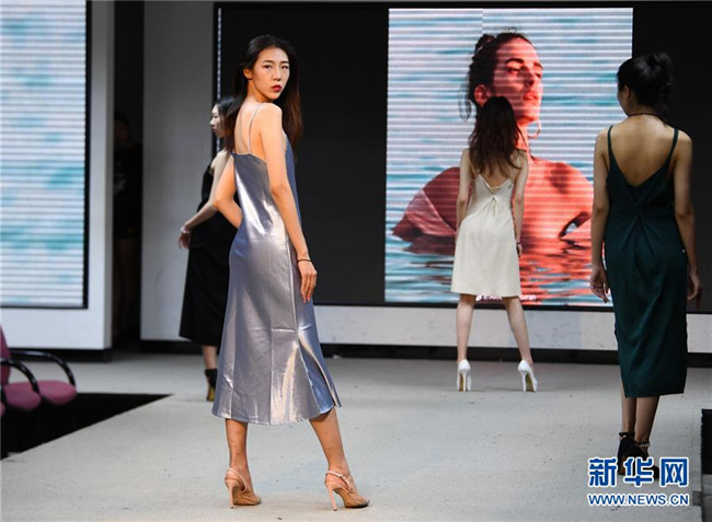 在西安工程大學2018級服裝設計與表演專業(yè)的學生在練習靜態(tài)造型展示(5月24日攝)。新華社記者張博文攝