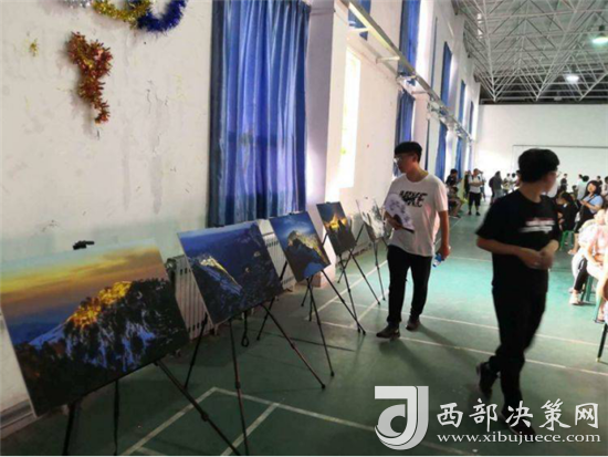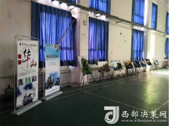 “演繹經(jīng)典”校園活動(dòng)開(kāi)場(chǎng)前,舞臺(tái)前方的投影大屏循環(huán)播放華山風(fēng)光宣傳片,奇險(xiǎn)峻秀的大美華山風(fēng)光引得現(xiàn)場(chǎng)觀眾贊嘆不絕。舞臺(tái)下方分別通過(guò)華山風(fēng)光攝影展、活動(dòng)展架等形式展示了華山四季的絕美風(fēng)光,吸引眾多師生駐足觀看。