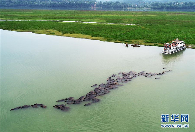 四川蓬安:百牛渡江吃草