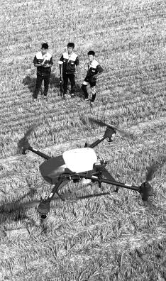 在山東省聊城市茌平縣賈寨鎮(zhèn)賈寨西村,植保人員操控著植保無(wú)人機(jī)給玉米噴灑藥物。趙玉國(guó)攝/光明圖片