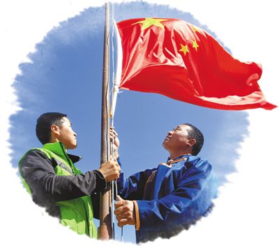 阿迪亞和兒子在升國(guó)旗。本報(bào)記者 吳 勇攝